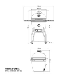 YAKINIKU LARGE Kamado completa Cuando usted pide el Kamado GRANDE incluyendo la base, las mesas laterales y el set pro, este no incluye la parrilla estándar. El pro set proporciona flexibilidad adicional, ya que puede asar a diferentes niveles. Con este set, también es posible exponer los ingredientes al calor directo e indirecto. Esto le permite dorar fácilmente la carne por un lado y continuar la cocción por el otro para conseguir la preparación perfecta.