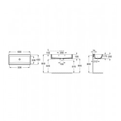 Lavabo de porcelana mural sin agujero para grifería. Longitud: 600 mm.Ancho: 450 mm. Altura: 200 mm. Material: Porcelana. Posición de la cubeta: Central. Sifón: No incluido. Sin rebosadero Tipo de instalación: Mural. Colección dirigida a colectivos de movilidad reducida que buscan soluciones ergonómicas, versátiles y sofisticadas en el espacio del baño.
