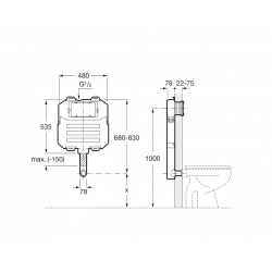 DUPLO WC COMPACT - Bastidor con cisterna compacta empotrable de doble descarga para inodoro suspendido. Distancia axial de 180mm. Codo de 90 ø / 110 ø. Perfil metálico con capacidad de resistencia de 400 kg. Patas ajustables de 0-200 mm. Conexiones hidráulicas superiores. A completar con una placa de accionamiento Roca compatible (no incluida).